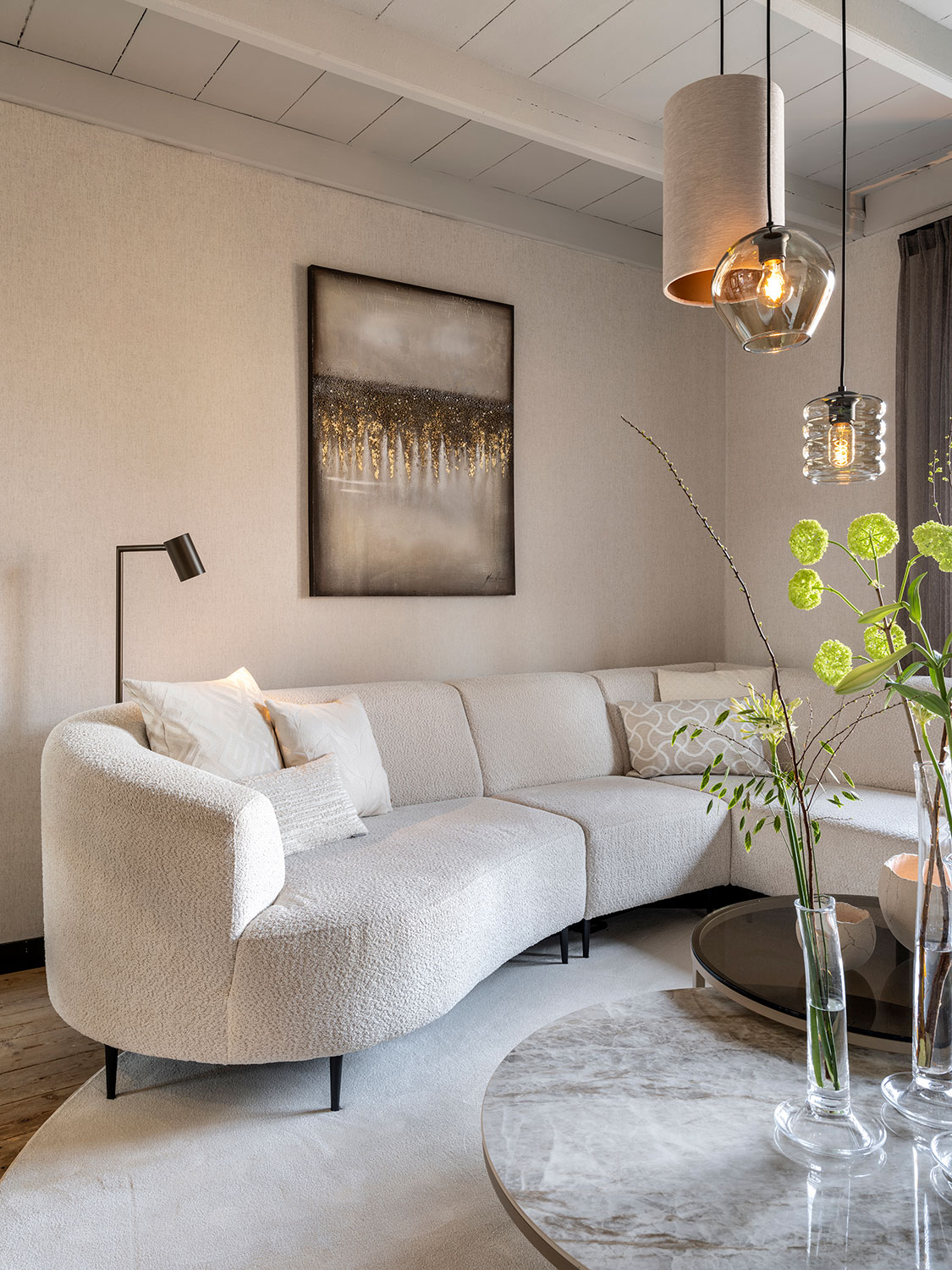De bank Diane nodigt uit tot ontspanning door haar ronde vormen. Door haar slanke hoge poten oogt de bank verassend luchtig. Door de verschillende losse elementen is de bank volledig naar wens samen te stellen, passend in iedere woonkamer!