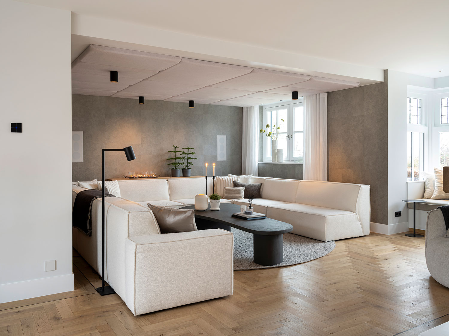 De bank Odette is een stijlvol meubel in uw woonkamer. Door de losse elementen konden de bewoners er een U-opstelling van maken. Perfect voor het gezinsleven of om bezoek te ontvangen.